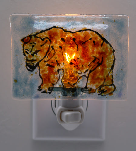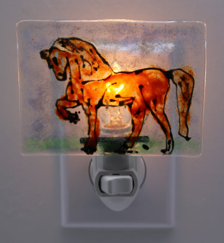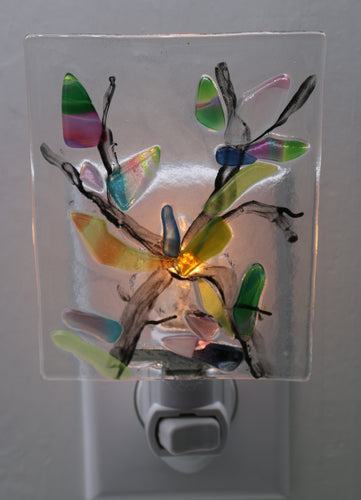 Our night lights shine brightly during the night to light your way. They are beautiful even while turned off. Some of them sparkle with dichroic glass while others shine with ambient lighting through creamy glass. Each one is unique and you can change them out for each season. These are wonderful gifts and brighten up any space.